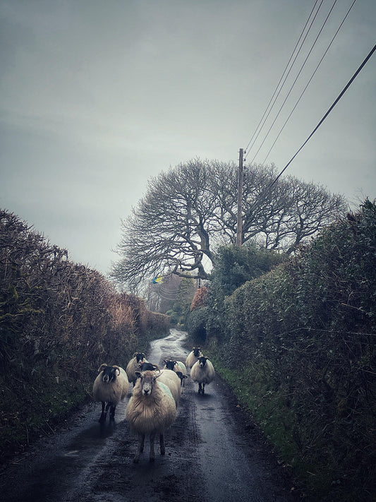 Sheep Gang on a Dartmoor Lane (Giclée Art Print)